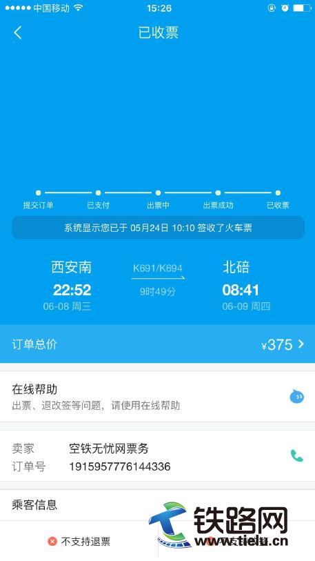 隨后過(guò)了二十多天,我發(fā)現(xiàn)未有任何票款退到支付寶上,遂聯(lián)系了阿里旅行,得知屬于阿里平臺(tái)上的第三方售票機(jī)構(gòu),于是聯(lián)系第三方售票機(jī)構(gòu),答復(fù)為此郵遞票在長(zhǎng)沙站臺(tái)購(gòu)買,如果我在西安南站辦理退票是直接退還現(xiàn)金的(當(dāng)時(shí)我也半信半疑)。之后(因?yàn)樵?14,網(wǎng)上均無(wú)法查詢到西安南站的聯(lián)系電話,于是撥打029 12306進(jìn)行詢問(wèn),經(jīng)過(guò)一周的溝通,還是無(wú)果)