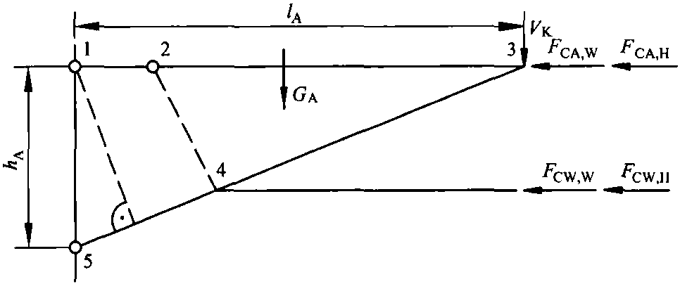 圖7.9所示的是作用在腕臂上的力。假定風的作用是從兩個方向交替作用的。為了簡化分析,可將施加的各種荷載概括成垂直分力和水平分力。