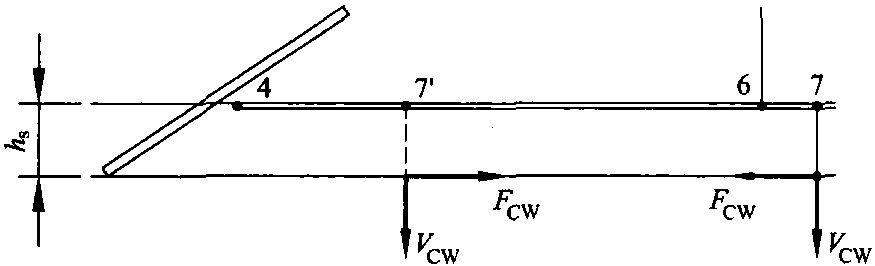 斜撐使該系統成為一個超靜定的系統。因而,由于該斜撐盡量安裝在接近點4的地方(圖7.9),所以假定該斜撐承受了垂直作用到腕臂管上的全部力,并且將這些力傳遞給平腕臂可能是合理的。于是作用在該桿上的力FD可確定為
