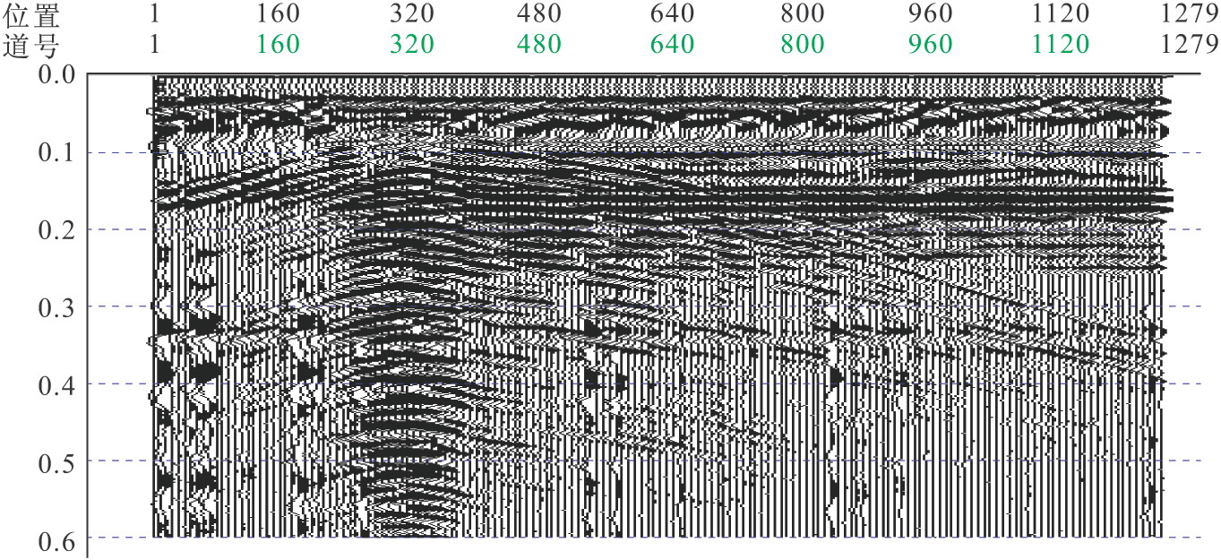 隧底雷達探測時,有些地段沒有鋪底,有些地段不太平整,采用連續采集方式,有時會在一定程度上影響數據質量。測量過程中由于天線的晃動、轉向、停步及經過鋪底與未鋪底地段的連接處,都會在淺部產生一些不規則的雷達圖像。因此,資料解釋中對一些不確切的雷達“異常”或明顯由于淺部產生的“異常”,應在采集中注意記錄這種情況發生的位置及地表環境條件,以排除虛假異常。