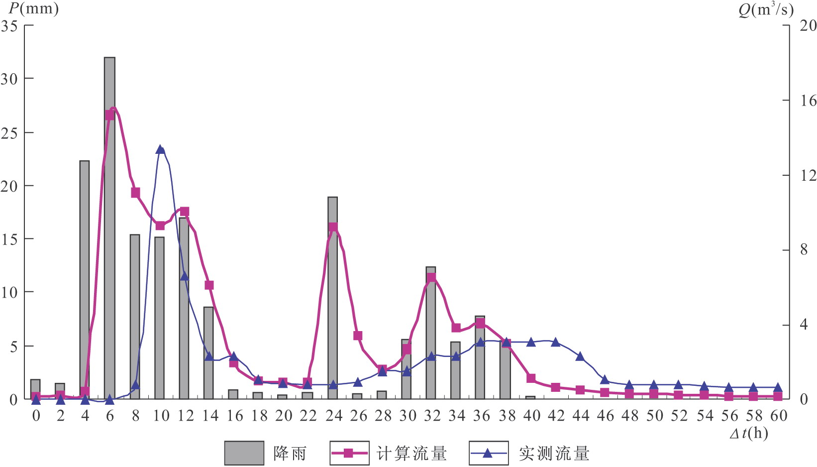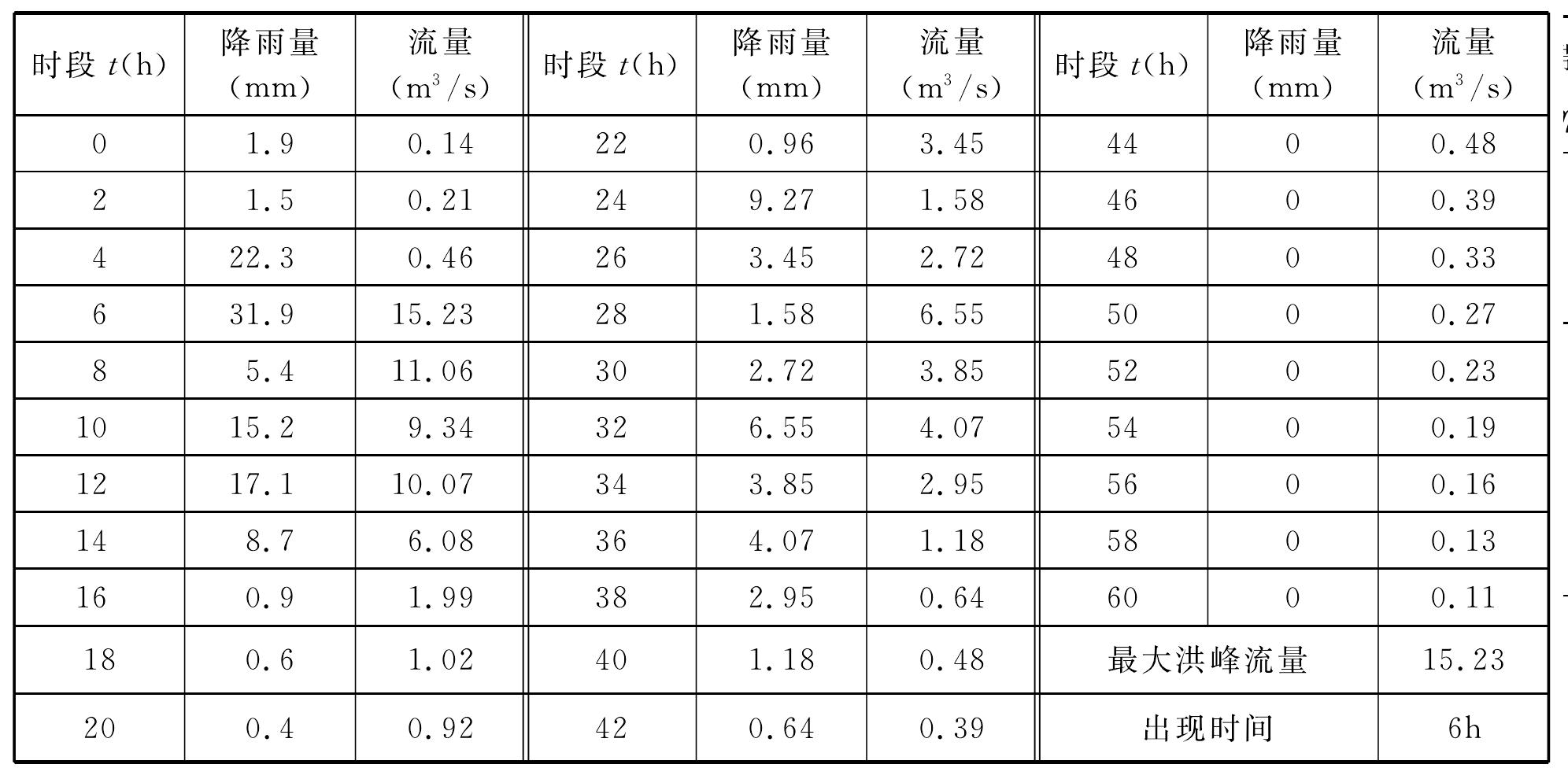 注:(前期降雨狀況及初損量,無雨日含無效降雨日)前4日無雨,I0=0;前11日無雨,I0=22.5;前6日無雨,I0=22.5mm;前2日無雨,I0=22.5mm;前2日無雨,I0=0