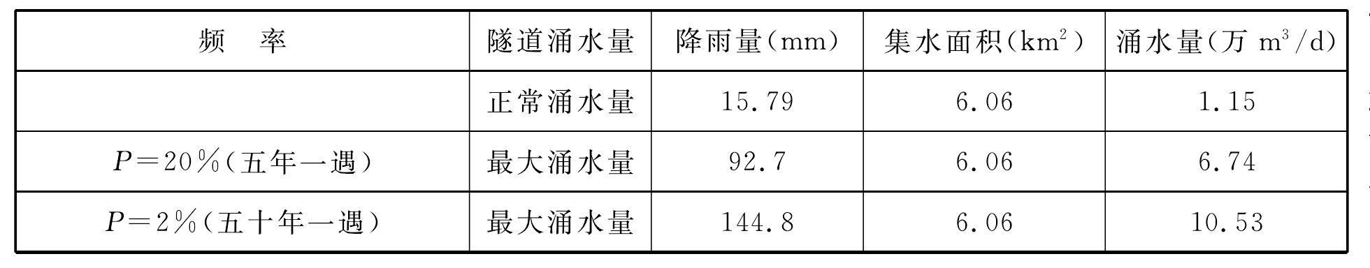 (1)隧道集水面積A。該段的集水面積應(yīng)為水谷壩洼地的匯水面積,為6.06km2;