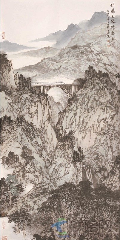圖八為國畫《劃開天路嶺為門》陳華廣州鐵路(集團)公司