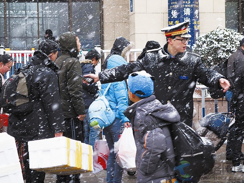 圖二為攝影《風(fēng)雪送客歸》刁紅民濟南鐵路局