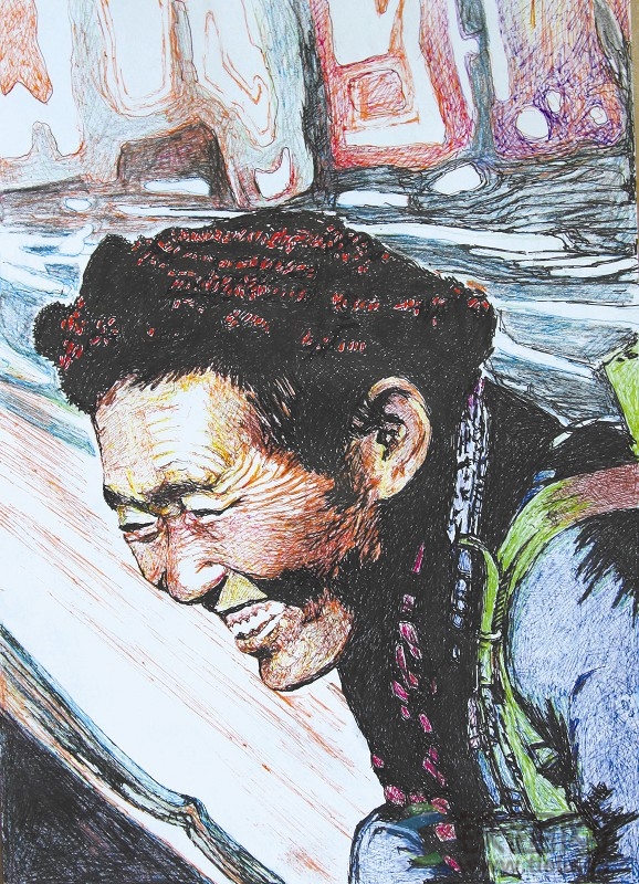 好的建議我會(huì)采納,采納之后才發(fā)現(xiàn),朋友的建議真的很好。我生在青海,長(zhǎng)在青海,畫高原的景色和人物,更容易去捕捉,這變成了我畫鋼筆畫的優(yōu)勢(shì)。所以,我的不少鋼筆畫有濃厚的青藏高原氣息。如果以后堅(jiān)持畫下去,我想我的鋼筆畫不會(huì)輕易脫離高原,不會(huì)輕易舍棄本土的一些東西。青藏鐵路開通運(yùn)營(yíng)后,我去拉薩已經(jīng)有好幾次了,每次都帶著相機(jī),拍回來不少適合畫鋼筆畫的藏族人物和高原風(fēng)光照。
