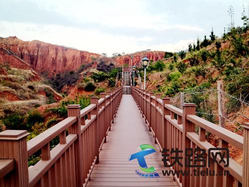傍晚時分,路燈未亮。晚餐后,我們一行四人沿著步道拾級而上。走上步道,邊觀望土林風光,邊看步道的質地——步道兩側是扶欄,腳下是隨地勢而上下的階梯,行走在上面,土林風光一覽無余,其中竟然還有數段玻璃步道,扶欄兩側設有照明燈。這時光線稍暗,燈光及時送來了光明。點綴在山谷之間的星星點點燈光,隨步道一路逶迤,給有人以溫馨靜謐的感覺。步道中段,不時有步道分成兩條,延伸出一段距離后則設有觀景臺。踏上觀景臺,微風徐來,涼意頓生。立于臺上,左右觀看,土林景色盡入眼簾,舉起相機一拍,方才察覺到,這里竟是一個最佳的拍攝位置。