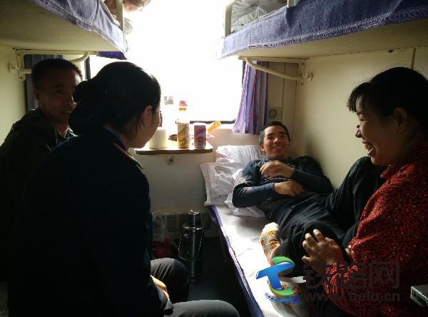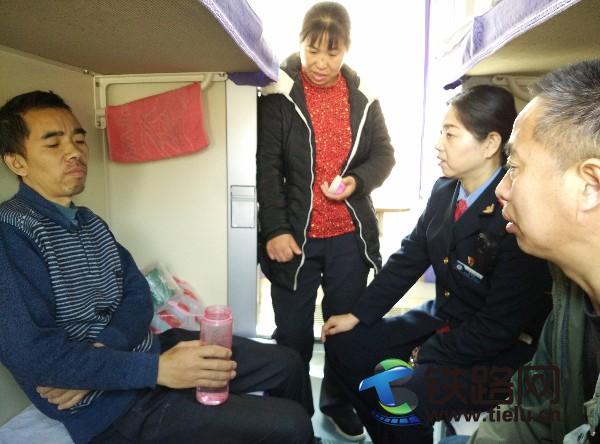 2016年3月6日,列車像以往一樣在鋼軌上飛馳著,突然對講機的急切匯報打斷了這份寧靜。“白車,白車,15號車廂有名旅客昏倒了,請通知廣播找醫(yī)生。”小組長何文玉著急地匯報著。列車長白莉云已最快的速度趕到了15號車廂探望生病旅客,并詢問旅客的情況,何文玉進(jìn)行了簡單的匯報。這名旅客在18號下鋪乘坐,愛人在18號中鋪,從烏魯木齊乘車,目的地是長沙,據(jù)同行人說上車后因為身體不適一直都未進(jìn)食,早晨上完衛(wèi)生間后就突然感覺到暈眩。白車長在詳細(xì)了解完之后,吩咐何文玉給旅客端來了白糖水,這名旅客在喝完后沒過一會兒臉色便恢復(fù)了紅潤。原來旅客因為長時間沒有進(jìn)食,而出現(xiàn)了低血糖。之后的一天旅程里何文玉不時的訊問著旅客的身體情況,為旅客訂餐,扶旅客上廁所,陪他們嘮嘮家常,最終平安地將旅客送到了目的地。他們在下車時他愛人激動地說:“妹子,這路上謝謝你了,多虧了有你,有機會來長沙玩,姐姐一定帶你好好轉(zhuǎn)轉(zhuǎn)。”何文玉微笑著說:“你們太客氣了,這都是應(yīng)該做的,也歡迎你們在到新疆來玩。”