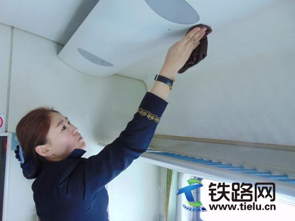 開始的時候,雙班清掃工作每一項都進行的很順利,大家干勁也很足,但是正當我們準備去清掃電暖器縫隙的時候,卻發現有點兒麻煩,不是很好操作,一是因為電暖器縫隙太小,我們帶著手套的話根本沒法將手伸進去,用筷子進行操作的話,又怕把將里面的線路損壞了,而且不戴手套的話,班組男生占大多數,手指粗很難伸進去,正當我們猶豫的時候,列車長李婧婧果敢地說:“我來吧1話剛說完,她就直接把手伸進去清理,那一刻,我們在場的人都感到十分的敬佩,做為一個女孩子,她總是身先士卒……