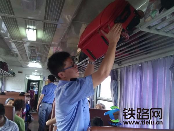 從上車整備到車門口驗票,從引導旅客進入車廂到為旅客調整行李架……他手腳麻利,動作嫻熟,絲毫看不出他是一名新工,問到他時,他說“這都是師傅的功勞,入職第一天師傅就手把手從一點一滴教我,每一個細小環節都會告訴我技巧和經驗。”所以李江龍干起活來得心應手,為他的暑運工作奠定的良好的基礎!