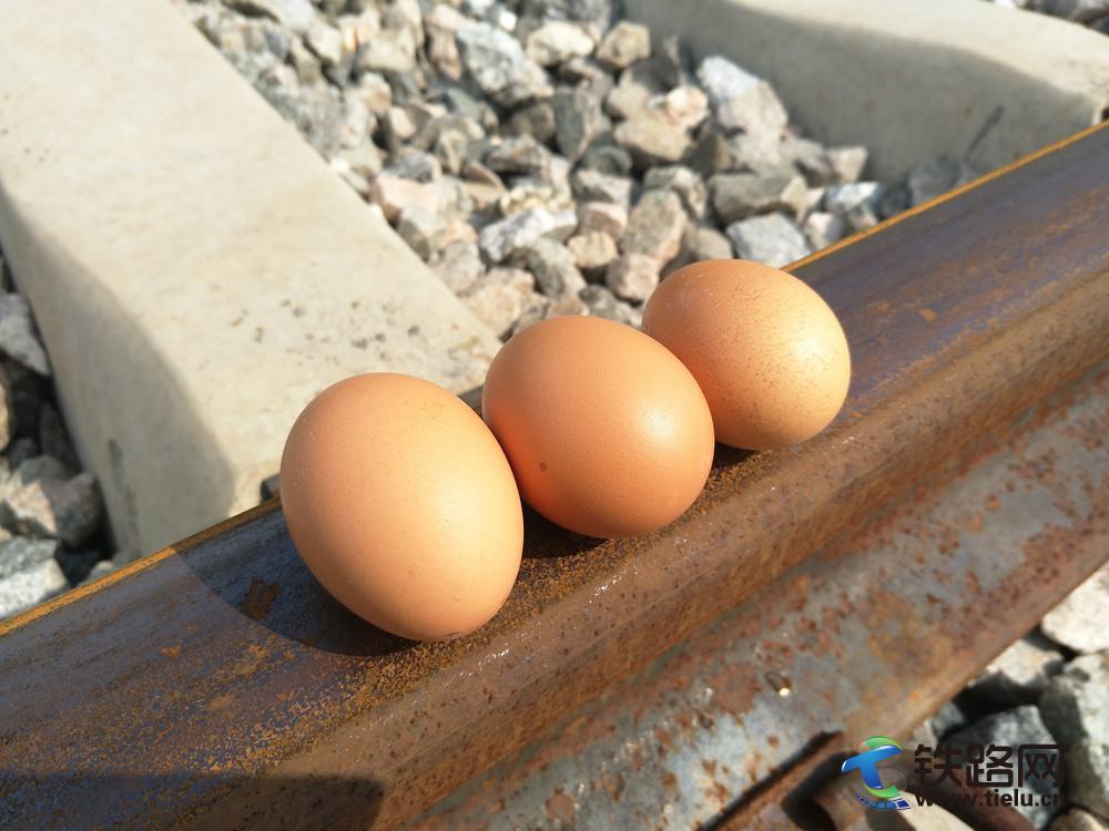 午后的鋼軌在太陽暴曬下溫度可高達(dá)60多度,正好幾天做個試驗,取一枚新鮮雞蛋將其打在鋼軌軌面上,來一份“煎雞蛋”如何?等待半小時后,這“煎雞蛋”雖然看上去不是金黃,但小編保證這雞蛋熟了,一顆糖心雞蛋好嘍!可想而知用“高溫炙烤”來形容并不為過!