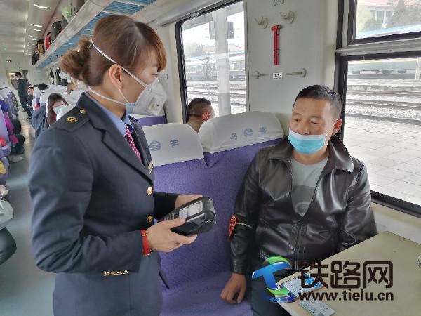 師傅,您要補票嗎?現在還有臥鋪票,到終點站,還要一天一夜呢?師傅,您把口罩戴好,現在是疫情期間,要做好防護!趙建坤一邊熟練的為旅客補票,一邊為旅客做著防護宣傳。面對與日俱增的旅客,列車上補票的旅客越來越多,趙建坤在辦公車補票,一坐就是一兩個小時,有空她又下車廂為旅客補票,一天下來,嗓子都變得有些沙啞,有時吃飯的時間也錯過了,她就吃一點自帶的零食,她沒有叫苦沒有抱怨。在她的臉上你始終都看不到絲毫疲倦,工作中的她依舊保持著微笑和最佳的精神面貌。