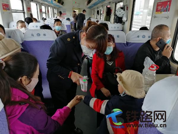 隨著疫情得到有效控制和緩解,復工復產的人員重返崗位,列車旅客不斷增加,庫爾勒客運段杭州車隊干部職工繼續全力以赴,積極做好疫情防控工作。杭州四組的乘務員們嚴格按照車隊防護要求,戴口罩,勤洗手加強自我防護的同時,對上車旅客做好體溫測量和登記,對列車各處所按照規定進行全方位消毒。趙建坤作為班組的業務員,沒有因為旅客俱增,工作量增大而僅限于完成她的業務工作。她認真落實班組的各項工作,列車運行在大區段,她做好防護下車廂為旅客辦理補票。辦公車工作量大,她忙完手頭的活,主動協助乘務員進行車廂的消毒工作。